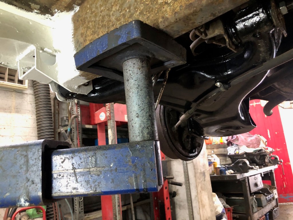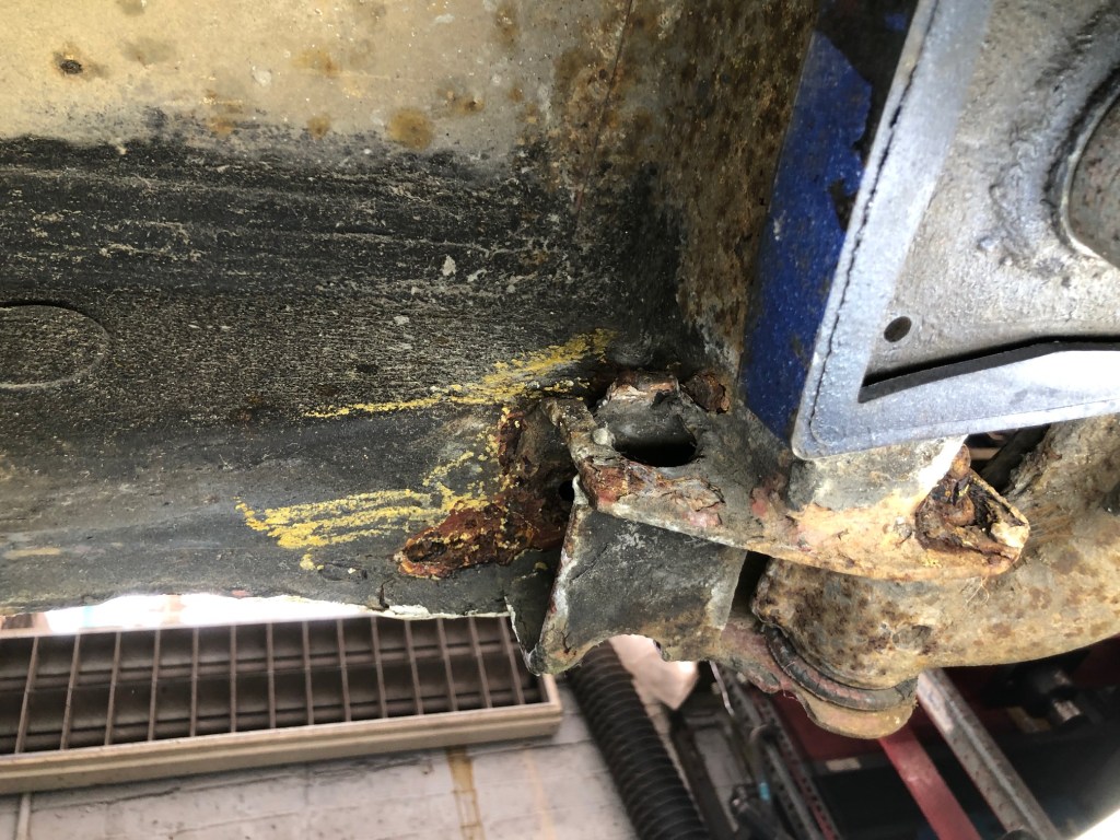 rear springs, shock absorbers, offside rear hub assembly disconnect driveshaft etc and remove offside corroded rear subframe (cut bolts all bushes seized in subframes), To
