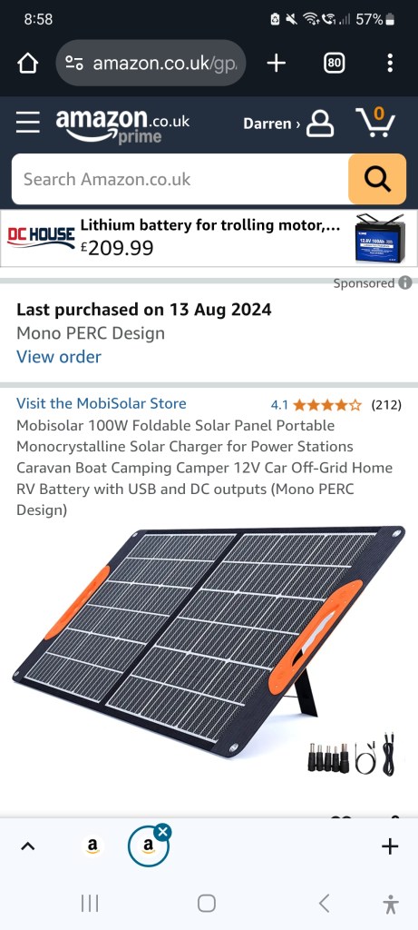 I started with a Just Kampers window solar kit, but it broke and even with a replacement I had issues. So I bought a cheap alternative for about £80 part way through the summer as I really needed the power top up for festivals.